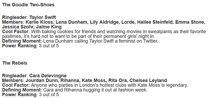and rates his own self proclaimed hollywood ‘it’ group, a 5 out of 5, fucking weirdo lmao. I wanna add a few others he ranked too because hilariously, he gives taylor swift and cara’s cliques 3s out of 5. Lmao: