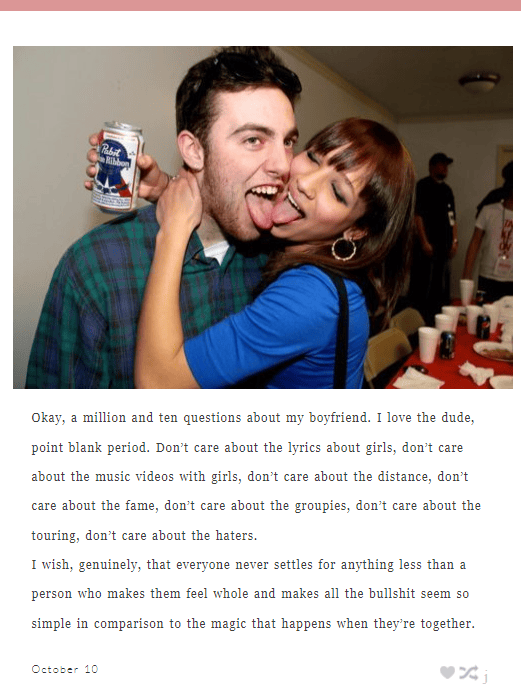 And Oct 10 2015 she posts a long write-up about sex and orgasms. She mentions her current boyfriend and … ummm I feel like this is not necessary to share here, lol. But she still has it up, so you can read it if you want.