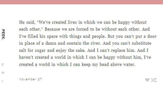 In fact, he was perfect at describing how I felt about him more than I was. Its like heās one step ahead of me. He has this intuition about us that eventually Iāll give in to. I just need some wonderful author to climb inside my head and heart, collect the info and put it onto paper. Johnathan Safran Foer, of course. The way he writes is… the way I think, or at least close enough.